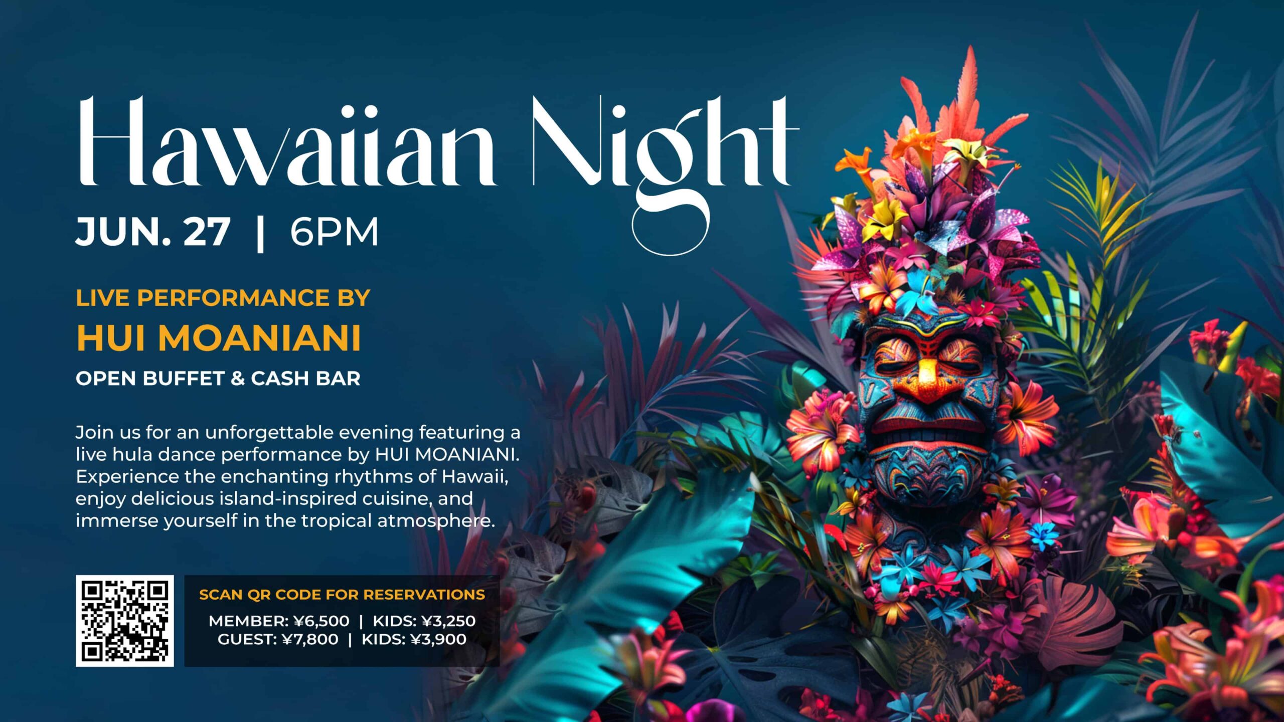Join us for an unforgettable Hawaiian Night featuring a live hula dance performance by HUI MOANIANI.